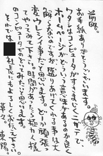 さておき。文面も「流石は東陽片岡!」ですね。パソコンやネットに興味を示さない